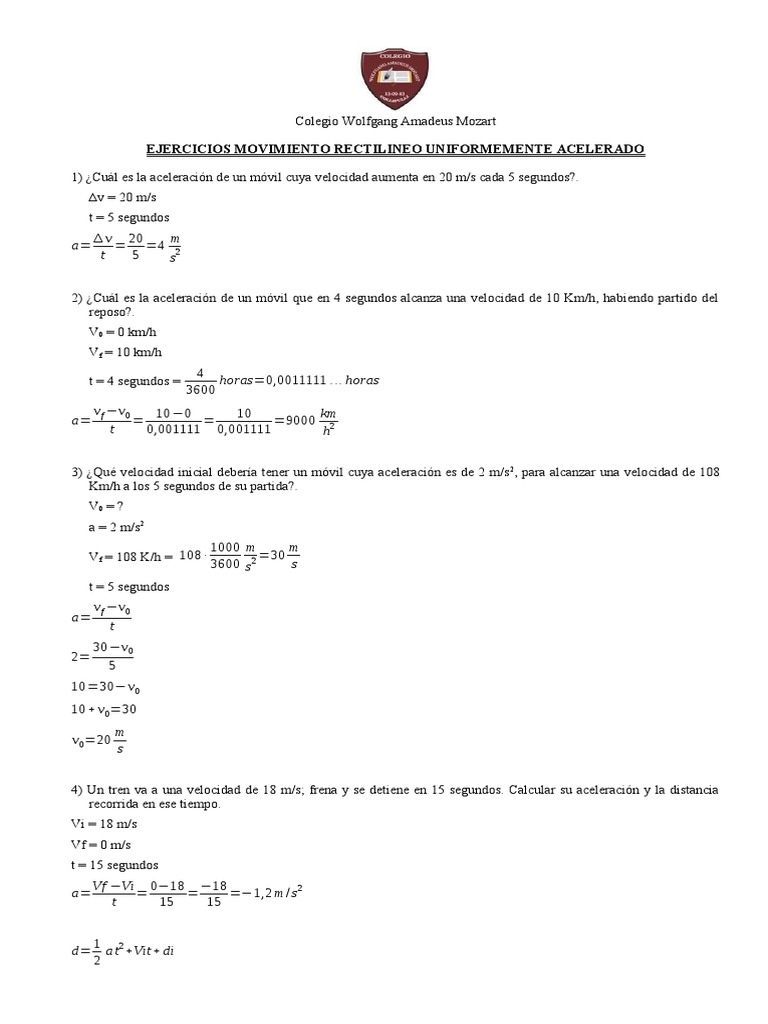 Ejercicios Mrua Pdf Aceleracion Tarifas